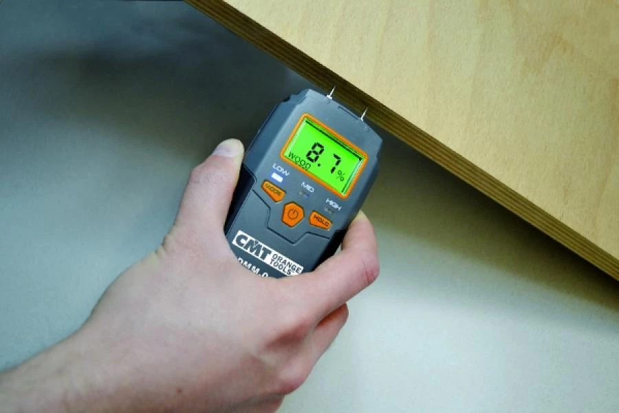 - Le nouvel appareil DMM-001 mesure la teneur en humidité en déduisant la résistance électrique dans le matériau à l’aide des deux broches de mesure