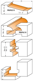 - Chaque jeu de 5 pièces contient un coupe-collage, un coupe-panneau, un coupe-tiroir à profilage horizontal et un coupe-tiroir à profilage + conter, selon votre préférence