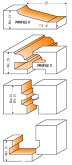 - Chaque jeu de 5 pièces contient un coupe-collage, un coupe-panneau, un coupe-tiroir à profilage horizontal et un coupe-tiroir à profilage + conter, selon votre préférence