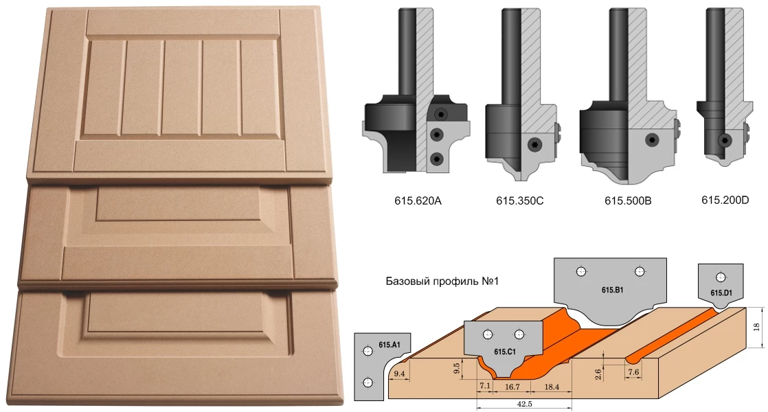 - Ce jeu de 4 pièces avec les profils les plus populaires pour la fabrication de portes de cuisine et de salle de bain en MDF